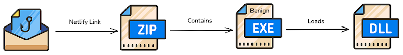 Some of the legitimate services abused to stage the archive files include Netlify, Sync, and OneDrive, whereas the email messages have been identified as sent from Proton Mail, Microsoft Outlook, and Gmail.
